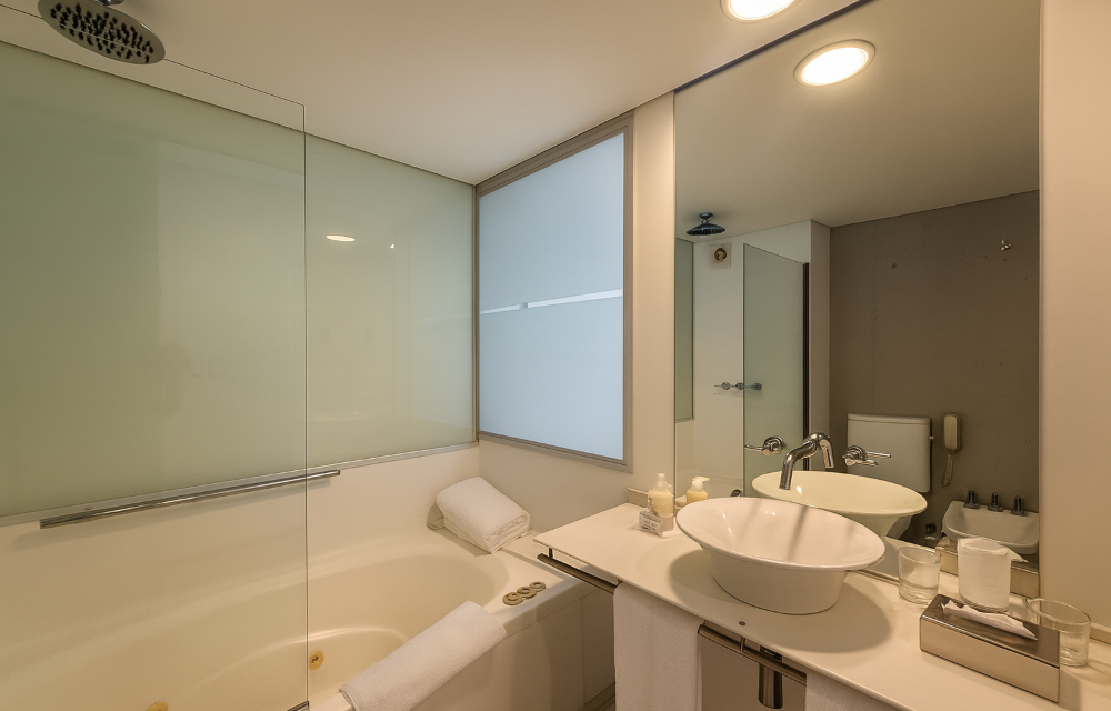 – Carpintería de techo a piso con doble vidrio para aislación térmica y sonora